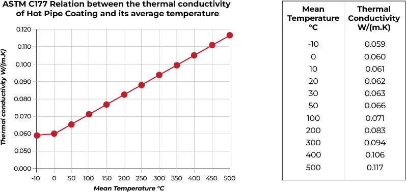HPC was compared directly against the competition in 2011 in Siberia for GasProm Oil when HPC was applied over a 470°C / 878°F pipe while operating. The competition representative only could coat a 125°C / 257°F pipe and after a full 4.7mm or 188 mils they still had not gotten it down below 111°C / 232°F or a 25°F drop with the 188 mils (0.13F per mil), and getting nowhere fast.