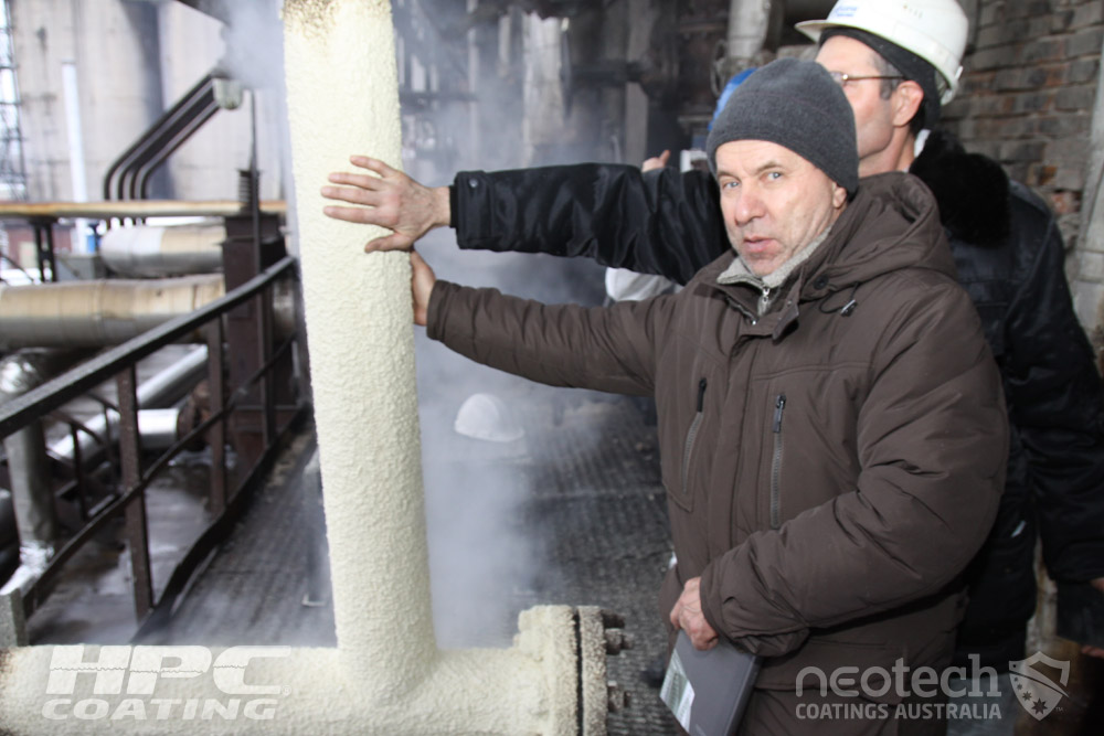 HPC® Coating being applied at Gazprom (Russia's largest LPG Energy supplier to Europe) and shows a 550°C hot pipe insulated down to less than 40°C in just minutes…all without a shutdown or hot permit. Manufactured by Superior Products International (SPI), Hot Pipe Coating (HPC) is available from NEOtech Coatings Australia.