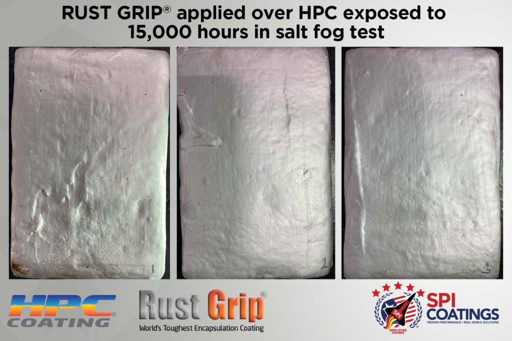 They placed these plates inside a salt-spray cabinet for the ASTM B117 testing to see how well the Rust Grip® would protect the HPC from salt spray and UV cycles.
