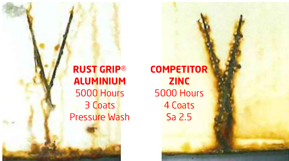 | Traditional Zinc coating | Rust Grip® Aluminium coating | |