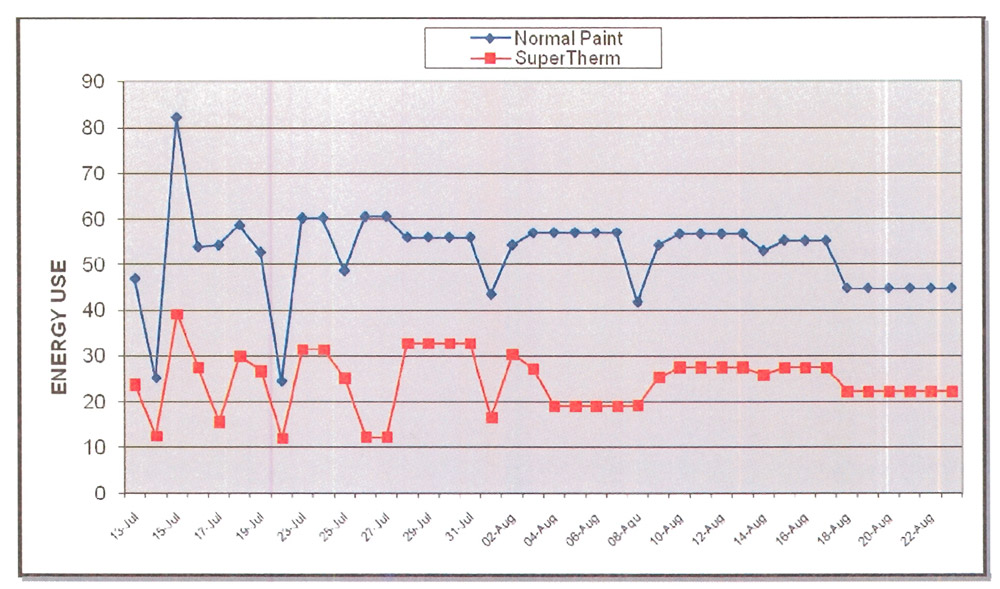Super Therm® was applied on a manufacturing facility in Kansas that was experiencing a great deal of difficulty in cooling various unconditioned buildings of the factory due to variance in size and significant volume. The results were an immediate reduction by 12°F on the lower levels, with an even greater reduction to the attic storage and overhead work zones on the second story. This temperature reduction enabled the facility to utilise simple ceiling fans for cooling during the summer months, and thereby lowering the overall expense of energy.