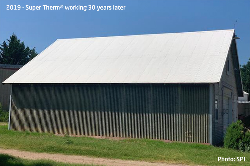When applied in 1989, still Super Therm has had no change in appearance – that's over 35 years – still bright white with no tears, cracks, flaking, lifting, separating, or loss of adhesion in coating film and performing successfully.