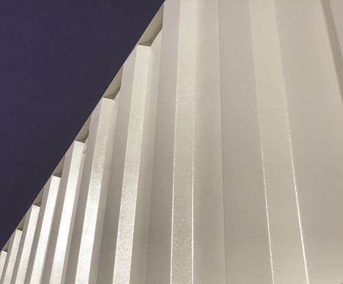 SP Coatings Vice President of Business Development and Technology Timothy Cappel explains that Super Therm® does not absorb heat from the sun. “That’s the benefit,” he remarks. “If it doesn’t absorb the heat, then there is no heat transfer to the inside of the passenger walkways.”