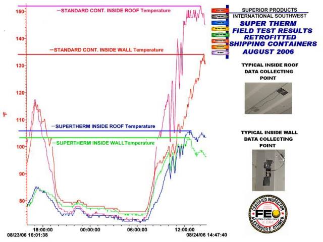 A Measurement and Verification Analysis was conducted at an intermodal facility in accordance with Florida's ENERGY CONSERVATION ASSISTANCE PROGRAMS (Designation: ECAP-CUL-1-03). Two standard 40ft containers were used, each fitted with 4,320 data points simultaneously recording data over a 24-hour test period. One container was treated with Super Therm® and one was left untreated.