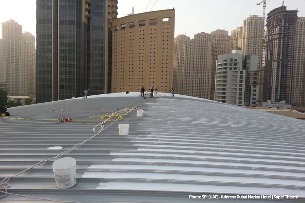 Solution: Super Therm® (water based reflective ceramic coating), manufactured by Superior Products International, (USA), was applied directly on the roof @ 250 micron DFT.