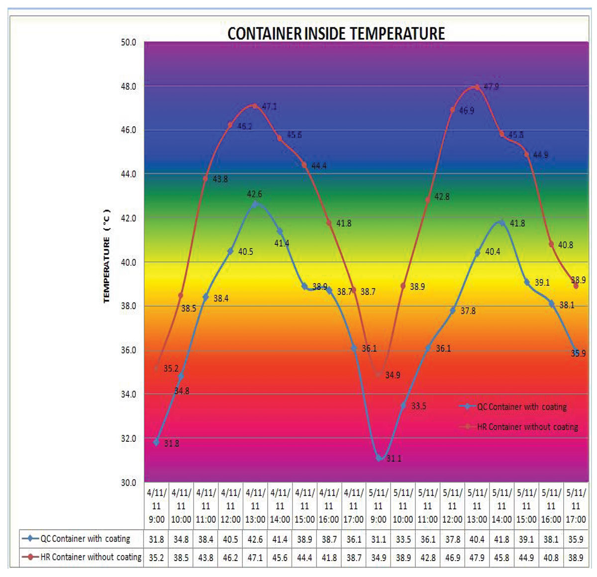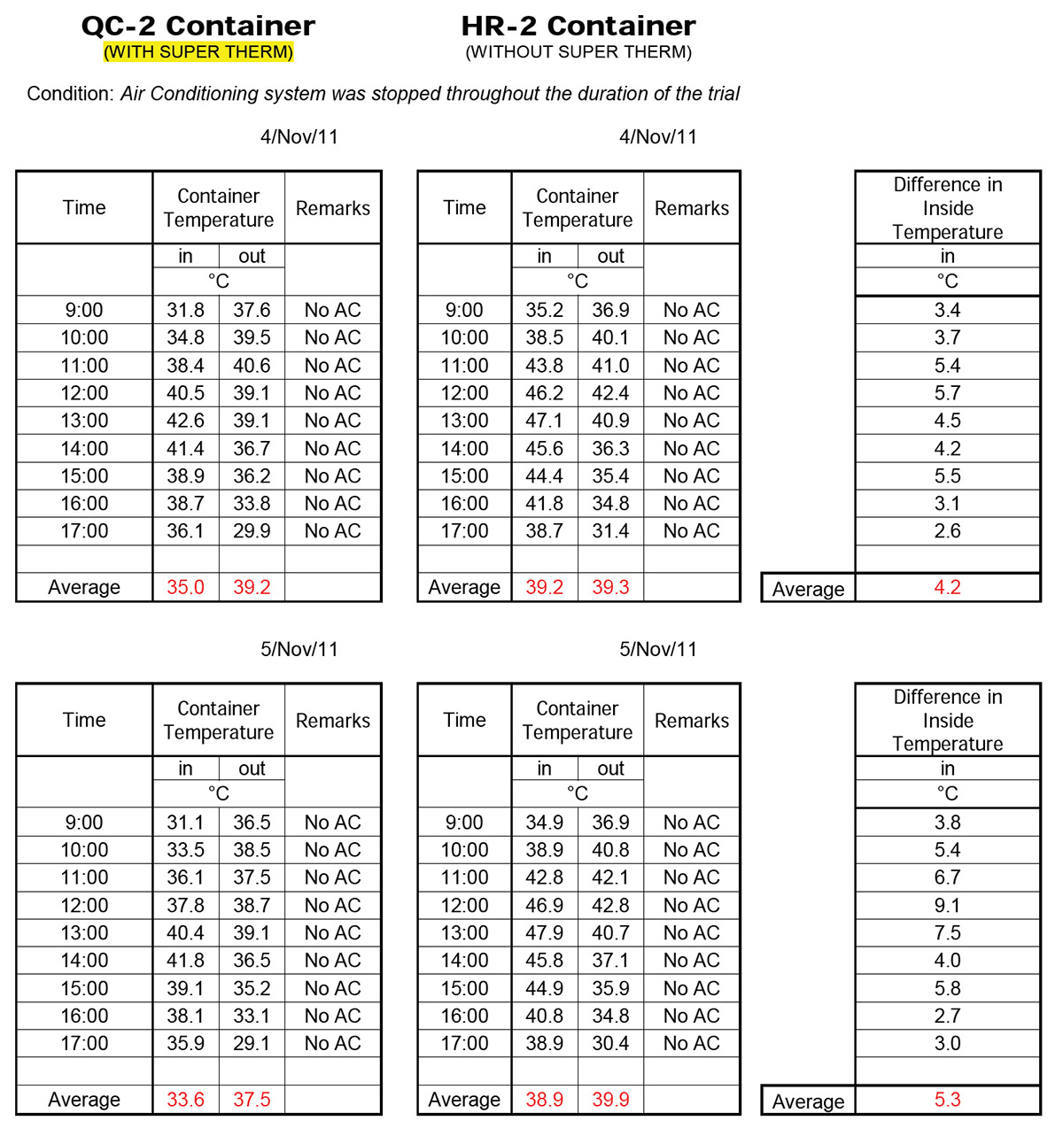 The study showed the Super Therm® container was on average 5°C cooler inside than the container without Super Therm®
