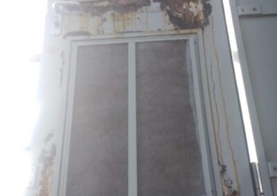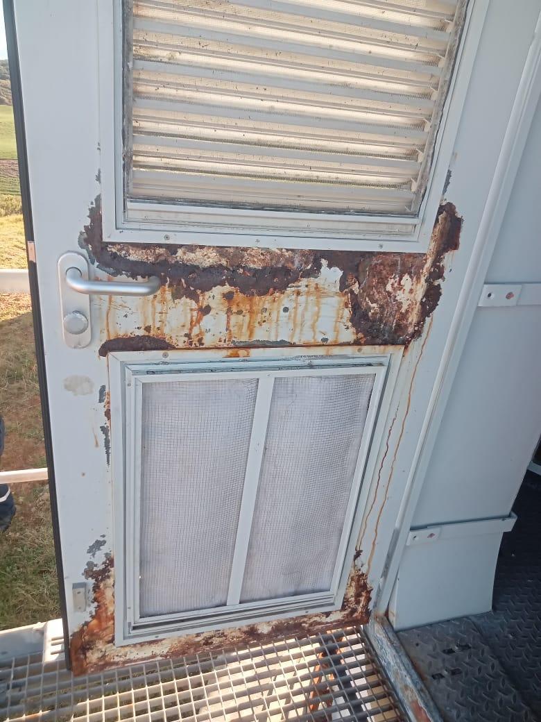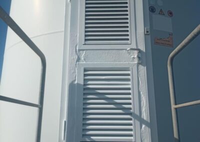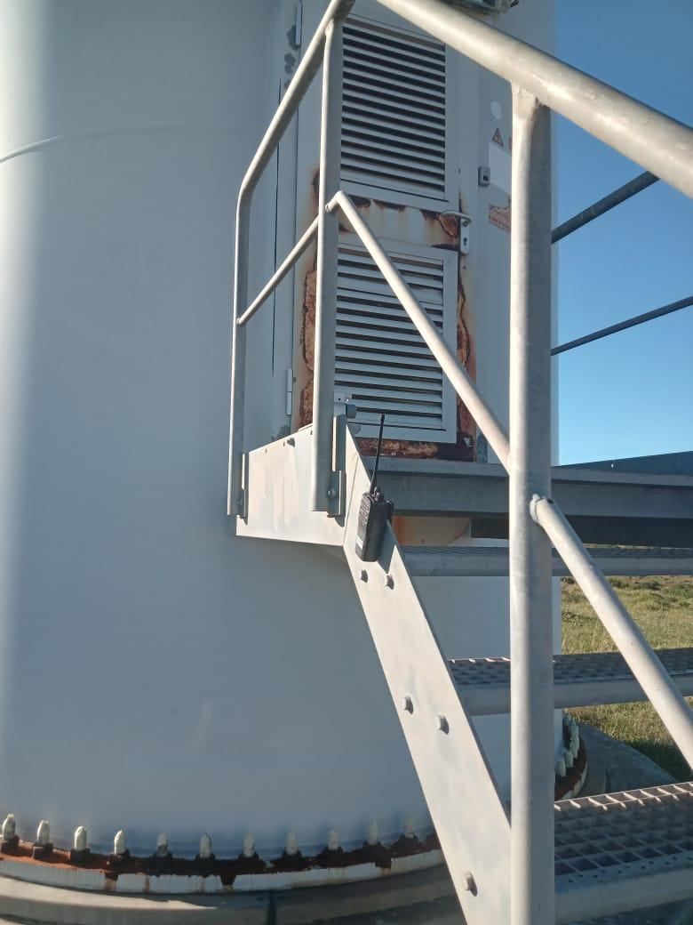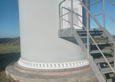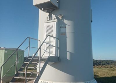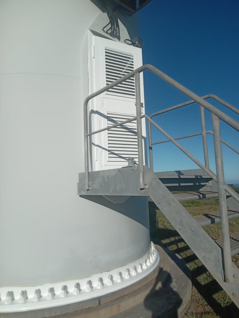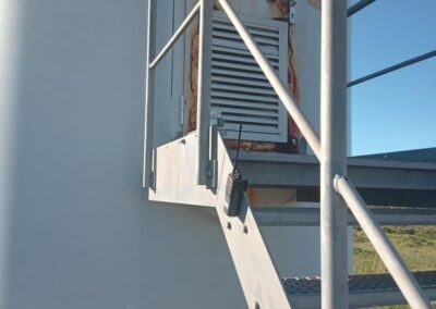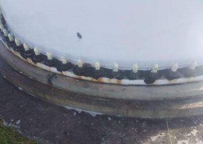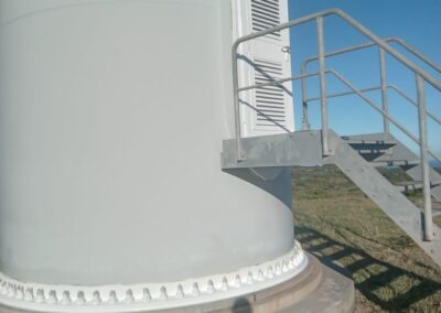 The project addressed corrosion deterioration on the tower base flange, door frames, ventilation panels, and associated structural steel components. Environmental exposure, coastal conditions, and moisture retention had resulted in visible rust formation and coating breakdown, particularly around bolted flange connections and access doors.