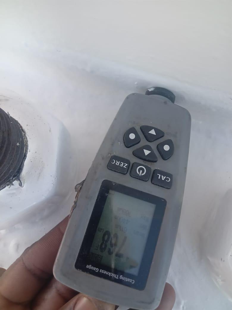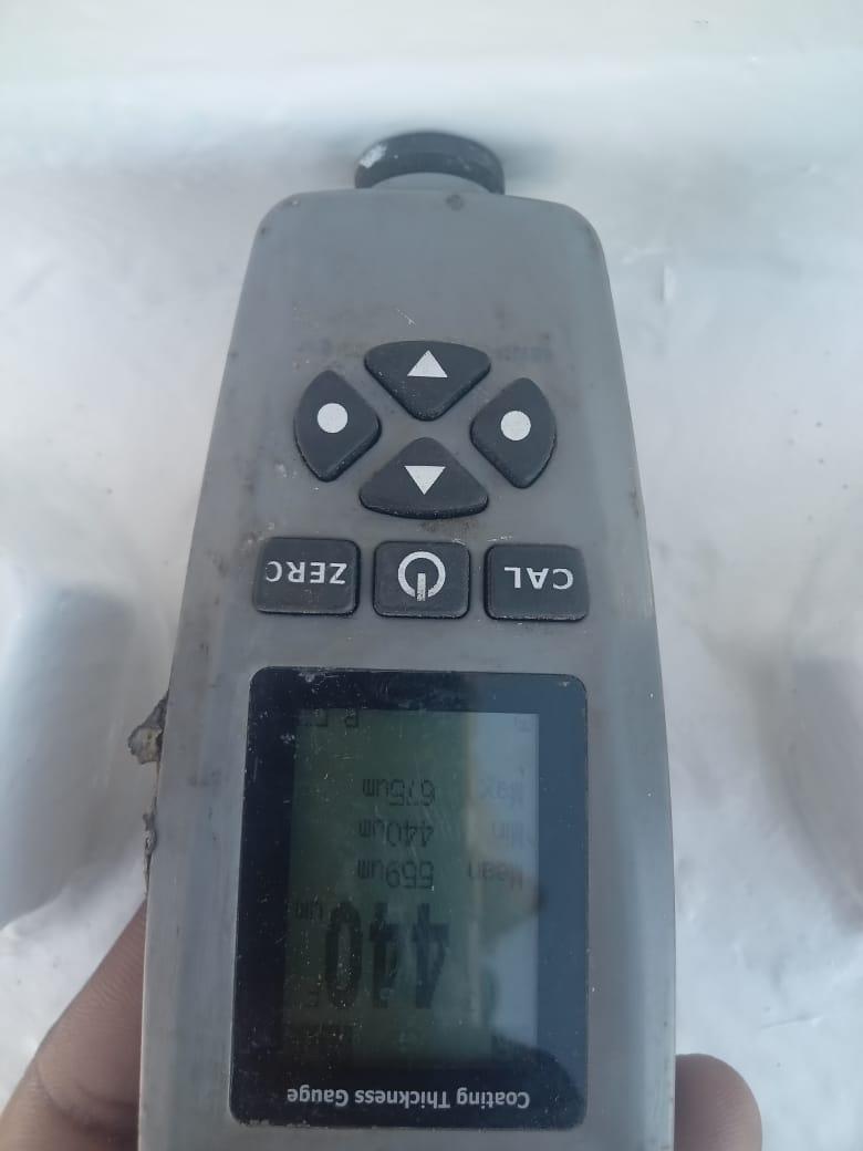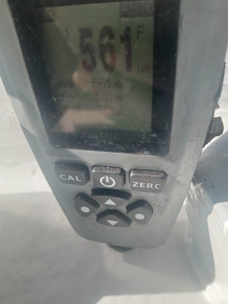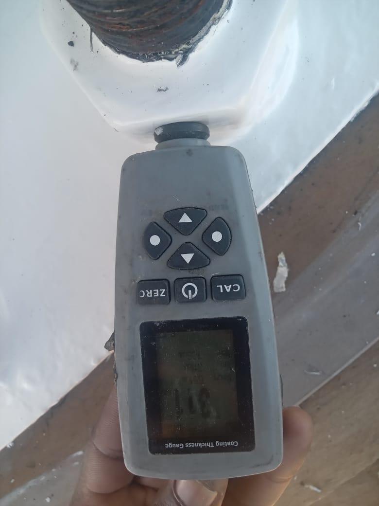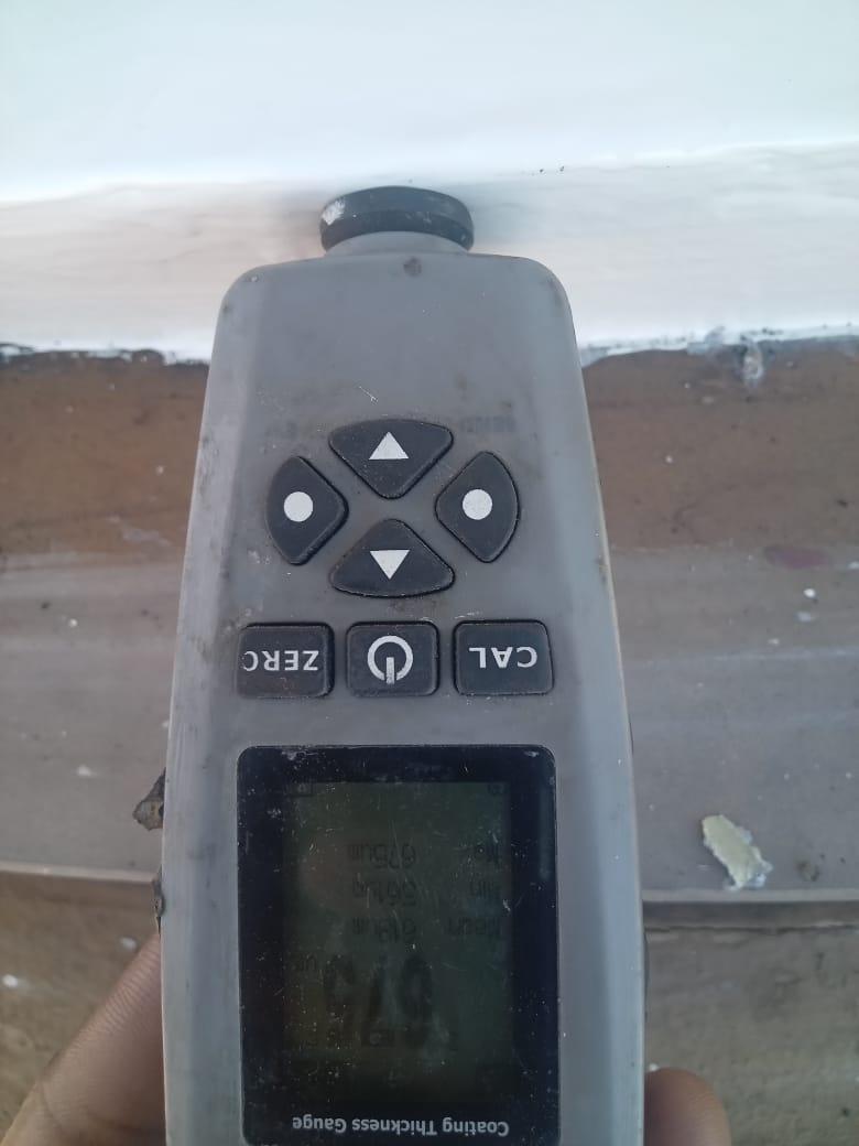 Final Dry Film Thickness (DFT) readings confirmed compliance with specification, with recorded measurements ranging approximately between 440µm and 768µm, as verified during inspection.